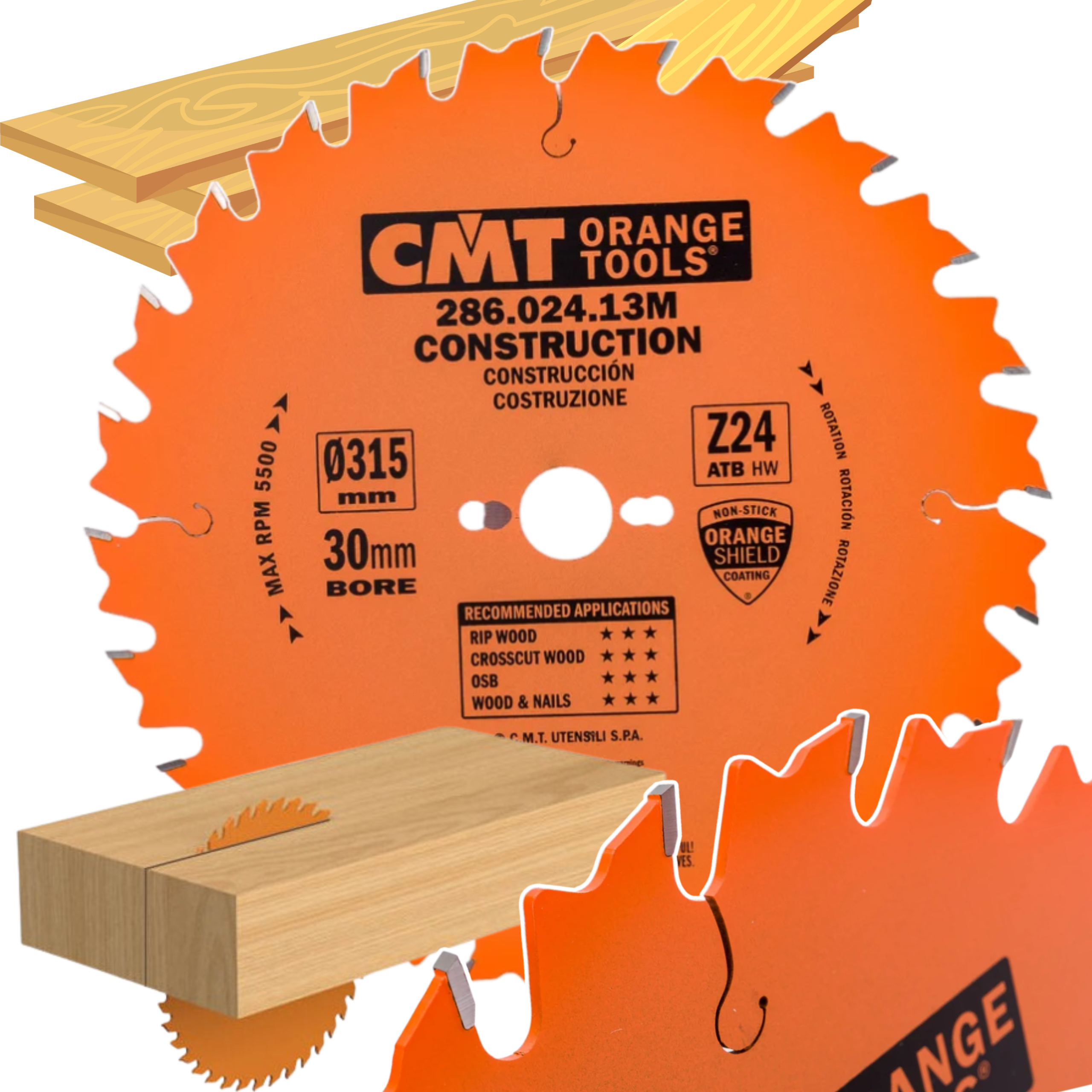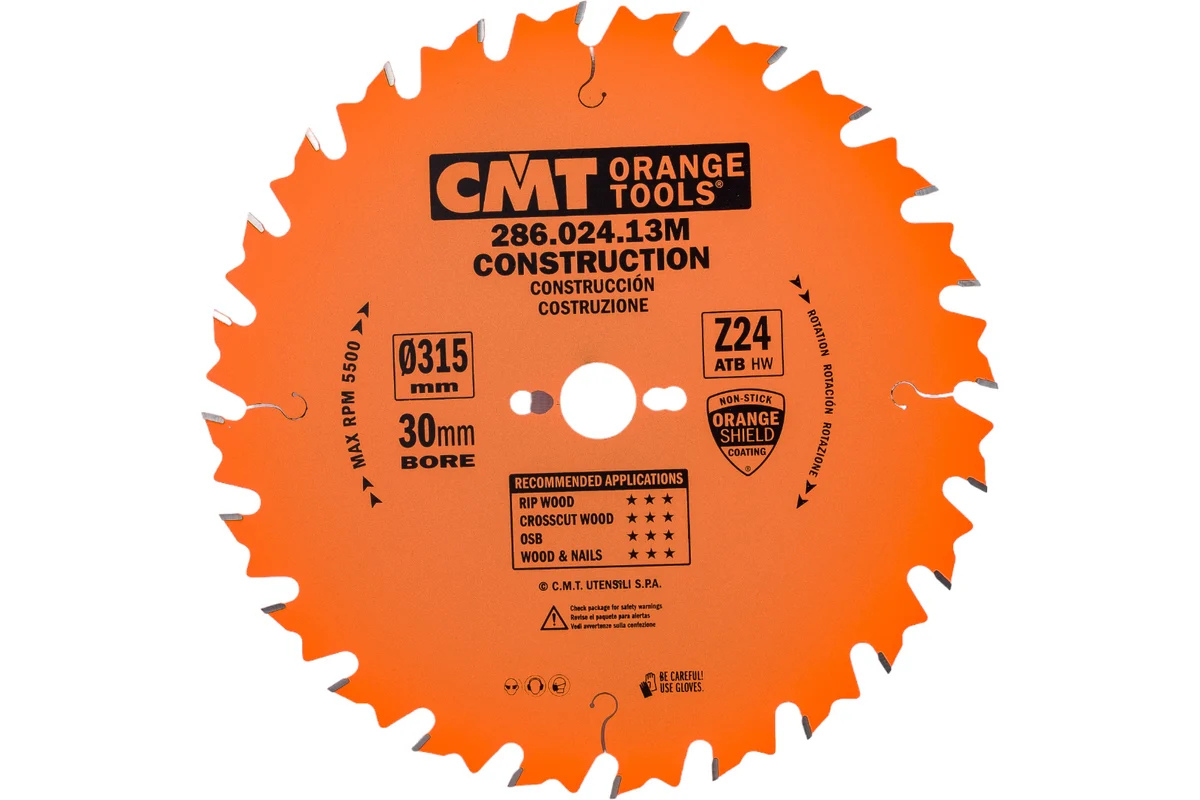 CMT 286.024.13M Piły dla wykonawców budowlanych do cięcia wzdłużnego z ogranicznikiem posuwu - HM D=315 F=30 Z=24K=3,2/2,2