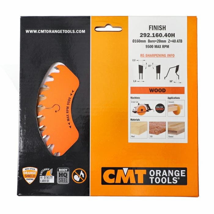 CMT 292.160.40H Orange Piła do cięcia poprzecznego do elektronarzędzi - D160x2,2 d20 Z40 HW