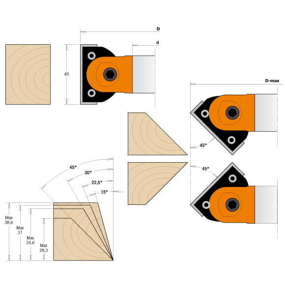 Głowica kątowa regulowana przeznaczona do fazowania krawędzi pod dowolnym, ustalonym kątem, dając idealne wykończenie za każdym razem, szczególnie ważne przy produkcji łączeń. Głowica przeznaczona do frezarek dolnowrzecionowych oraz formatyzerek.