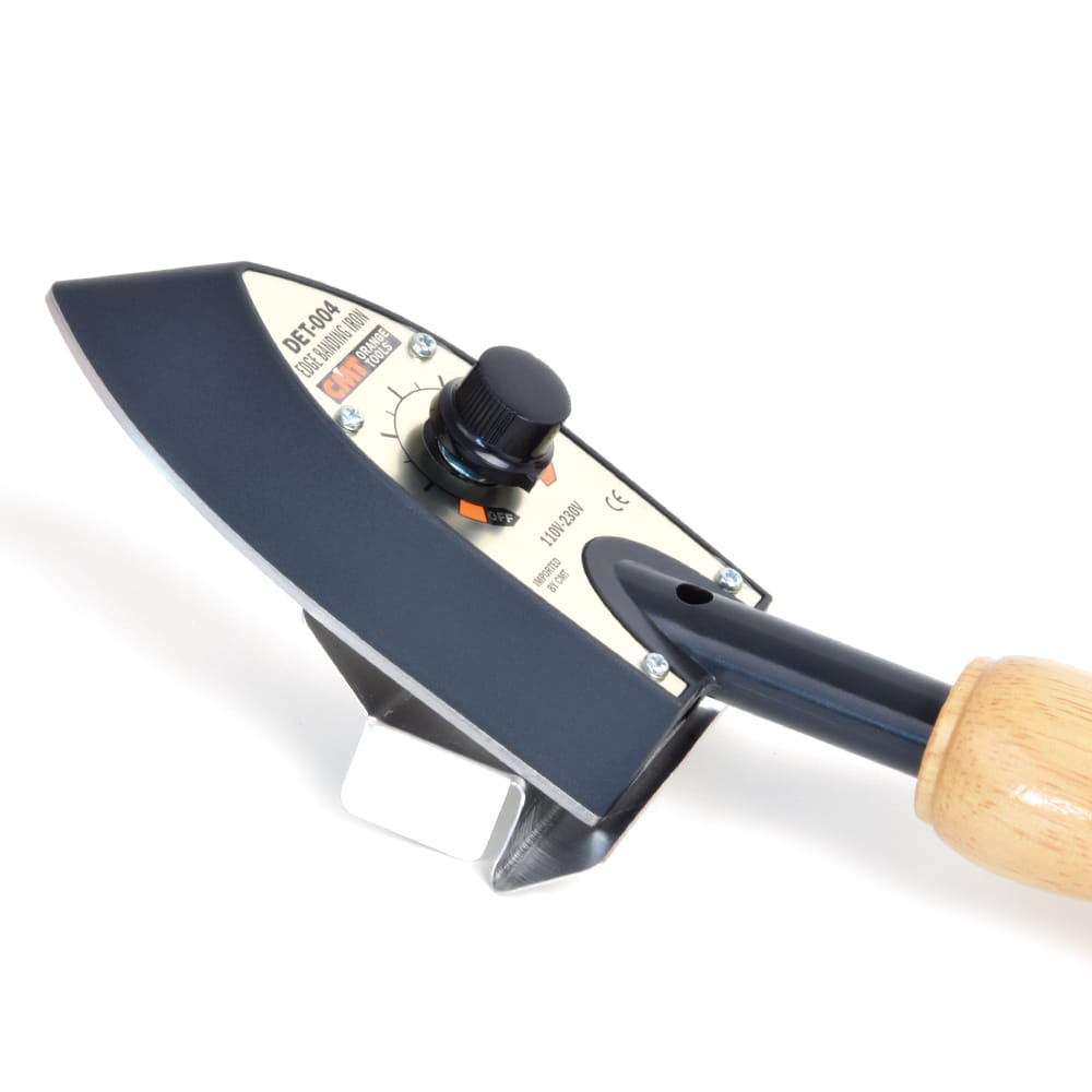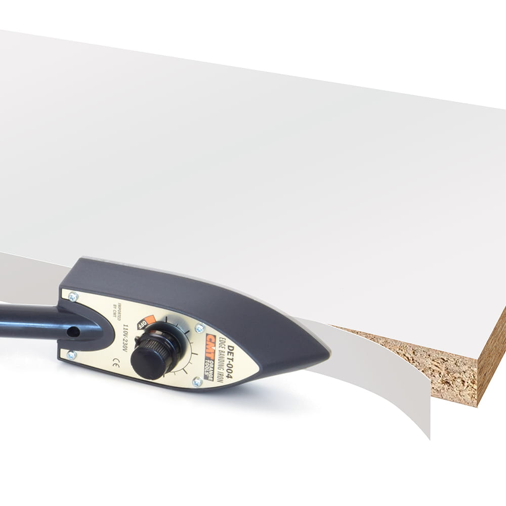 Jest to idealne narzędzie do nakładania i podgrzewania, wstępnie podklejonej, okleiny do krawędzi płyt meblowych. Żelazko zostało wyposażone w powłokę która nie przywiera do aplikowanego materiału, co umożliwia sprawną i łatwą pracę. Sterownik termostatyczny zapewnia szybki czas podgrzewania urządzenia. Posiada odporny na wysoką temperaturę stojak, który umożliwia bezpieczne odstawienie żelazka.