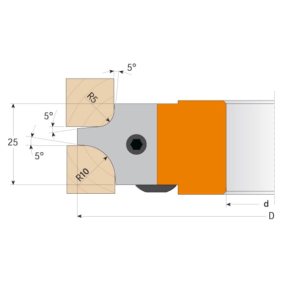 Innowacyjna głowica frezująca, mająca możliwość zamontowania trzech różnych noży, tworzących zaokrąglenie 6 różnych promieni. Standardowa głowica posiada promienie 5 i 10 mm; pozostałe dwa noże, do dokupienia, mają tworzyć promienie o rozmiarach 4-8 mm i 3-6 mm. Do zastosowania na frezarkach dolnowrzecionowych i formatyzerkach. Do wszystkich materiałów, idealna do drewna litego oraz materiałów drewnopochodnych.