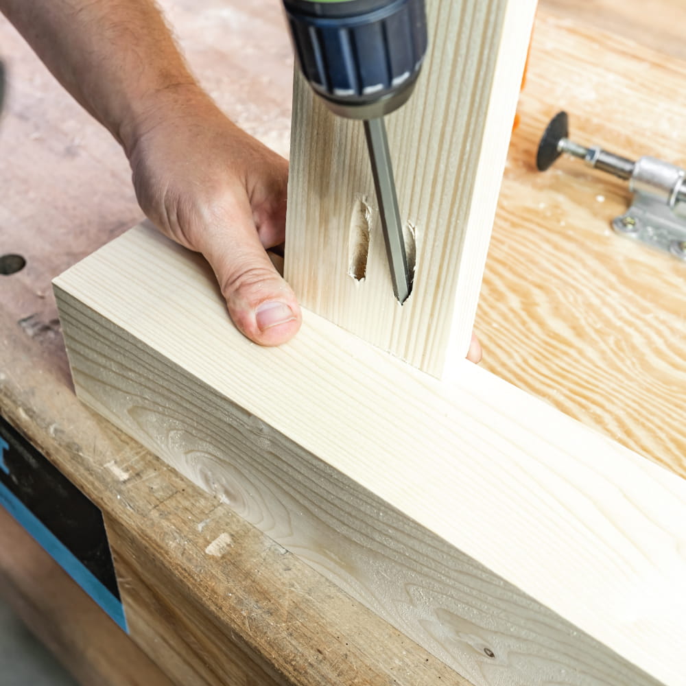 - ✅ Łączenie elementów konstrukcyjnych z drewna i płyt