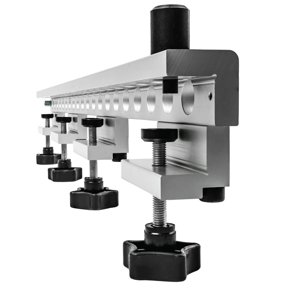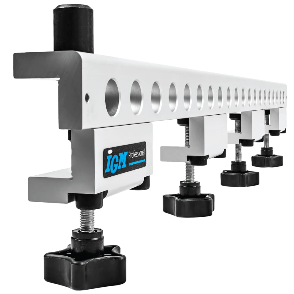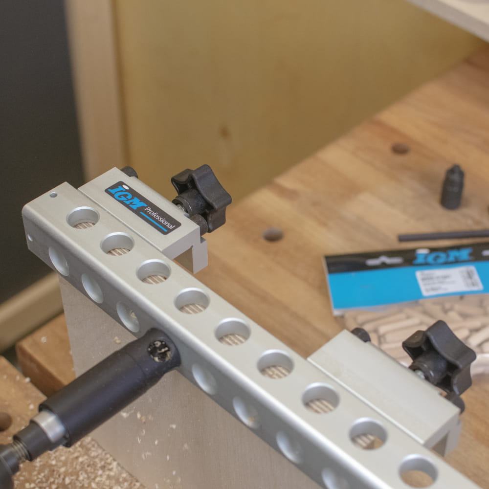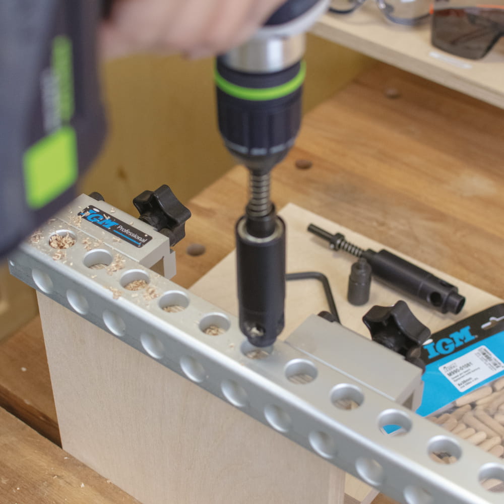 Uniwersalne urządzenie do szybkiego wiercenia zaprojektowane w celu dokładnego i wydajnego dyblowania elementów mebli. Przyrząd nie tylko w znacznym stopniu pomaga w uzyskaniu wysokiej precyzji ale również znacznie zwiększa wydajność pracy. Poszczególne pozycje otworów, które zaprojektowane są z odstępem 32 mm odpowiadają standardowej normie Euro dla maszynowego dyblowania elementów mebli. Urządzenie przeznaczone jest do użytku z IGM wiertłami z HM końcówką z węglika spiekanego, które zamocowane są w uchwycie wiertarskim za pomocą takiego samego systemu jak w przypadku mocowania w wiertarce wielowrzecionowej.