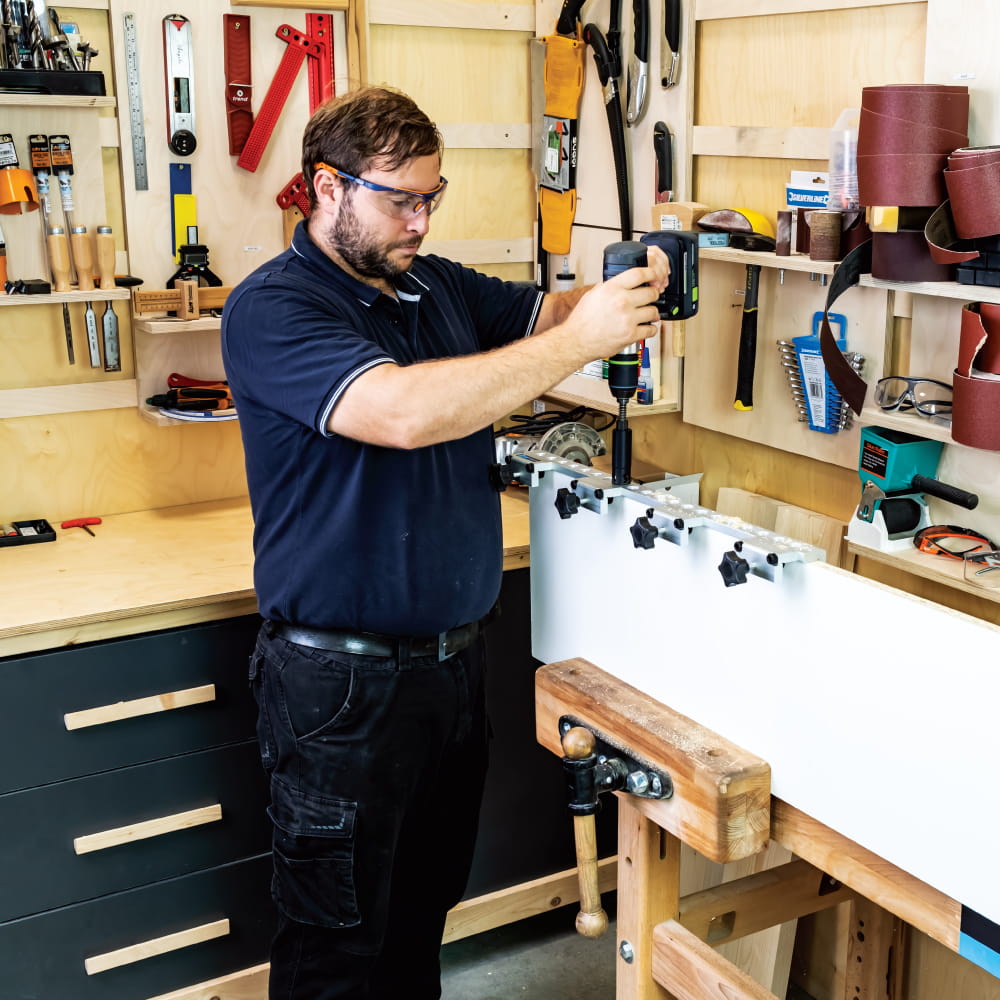 Kołki oraz konfirmaty można wytwarzać zmieniając wiertła w uchwycie wiertarskim.