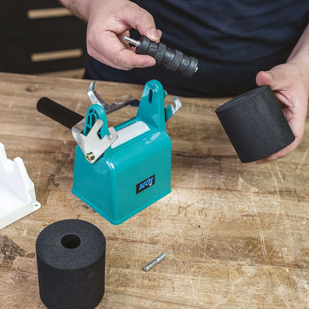 Prosty i ekonomiczny aplikator kleju jest wykonany z tworzywa sztucznego i jest przeznaczony do krótkotrwałego użytku DIY. 2 wałki piankowe są częścią zestawu.