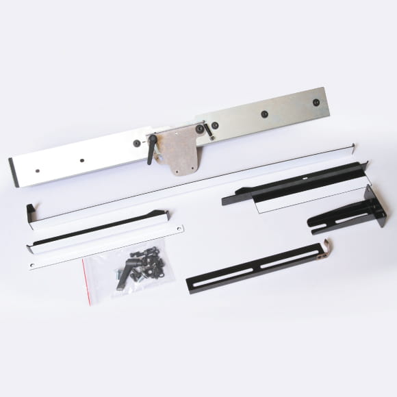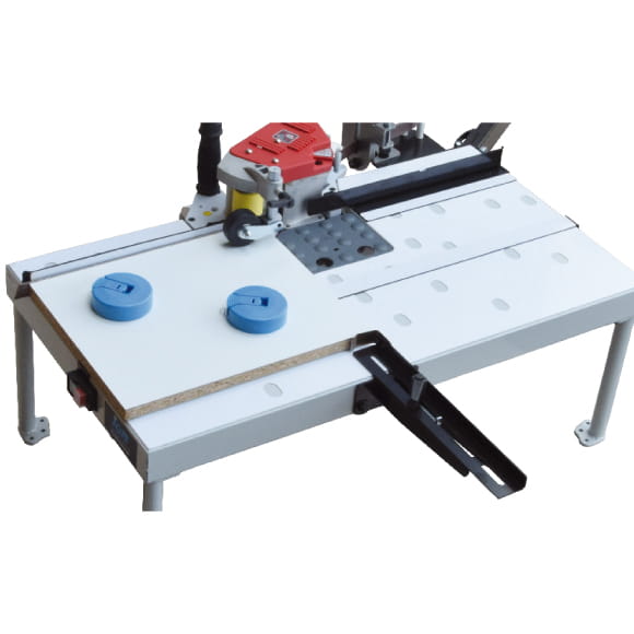 Zestaw ten rozszerza możliwości wykorzystania stołu ST95 oraz znacznie poprawia komfort podczas oklejania oraz przycinania krawędzi większych równych elementów takich jak np. korpusy mebli lub podczas obróbki większej ilości elementów. Przykładnica wspierająca o długości 800 mm, regulowana przednia siła docisku oraz listwy prowadzące utrzymują element w optymalnej pozycji podczas oklejania lub frezowania.