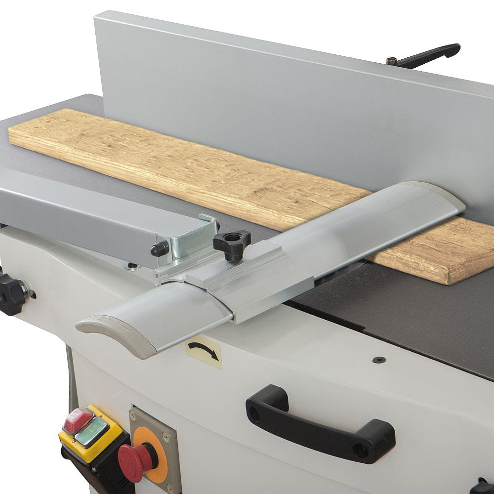 Za pomocą jednej ręki można szybko zmienić położenie żeliwnego stołu. Zmiana funkcji maszyny z wyrówniarki na grubościówkę nigdy nie była łatwiejsza. Długi stół oraz bardzo dokładna przykładnica gwarantują precyzję natomiast 3 nożowa głowica zapewnia idealnie opracowaną powierzchnię.