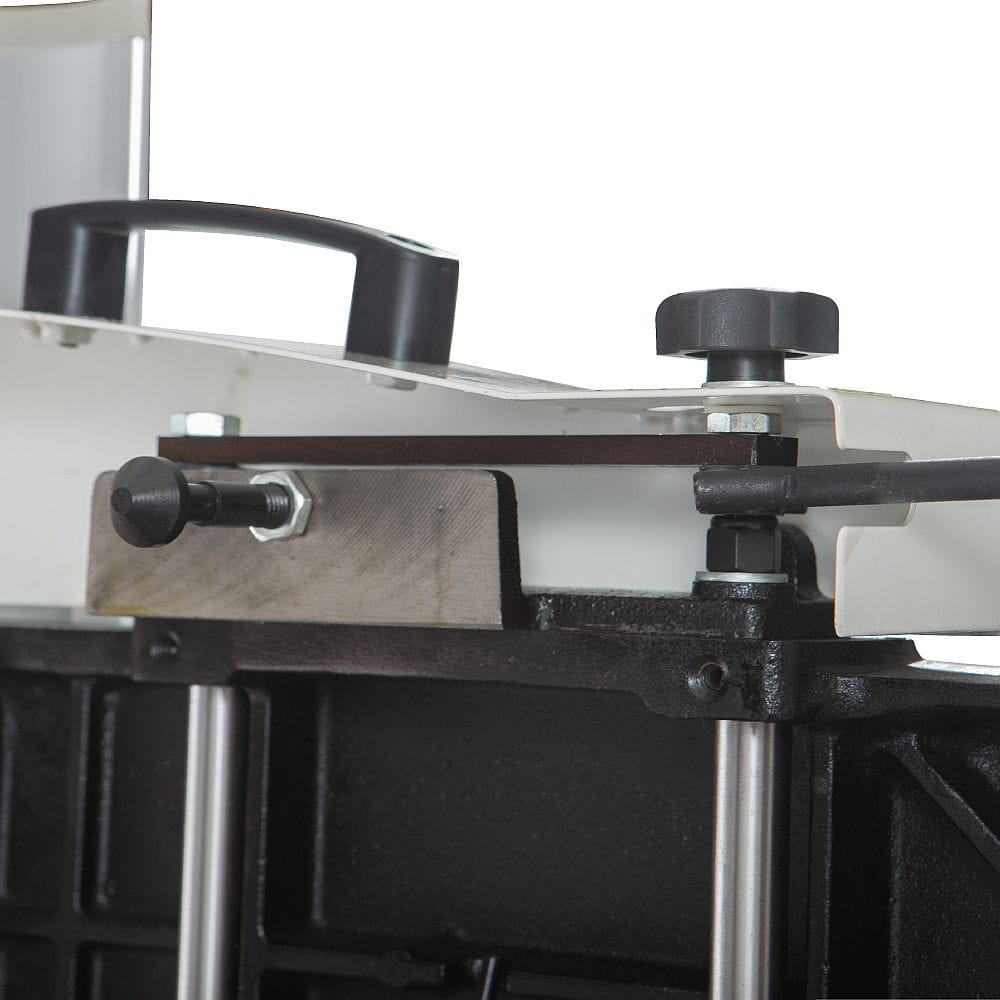 Ustawienie wysokości stołu wejściowego za pomocą dźwigni mimośrodowej jest proste i łatwe. Za pomocą mimośrodu można również ustawić wysokość stołu wyjściowego. Dysza ssąca dzięki podłączeniu do odpowiedniego układu odciągowego utrzymuje maszynę w nienagannej czystości. Maszyna z szerokim zakresem zastosowań idealnie nadaje się do profesjonalnych warsztatów lub do pracowni majsterkowiczów.