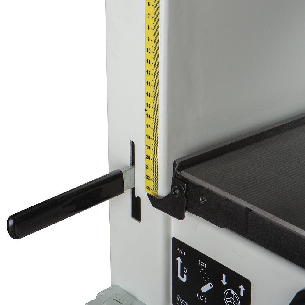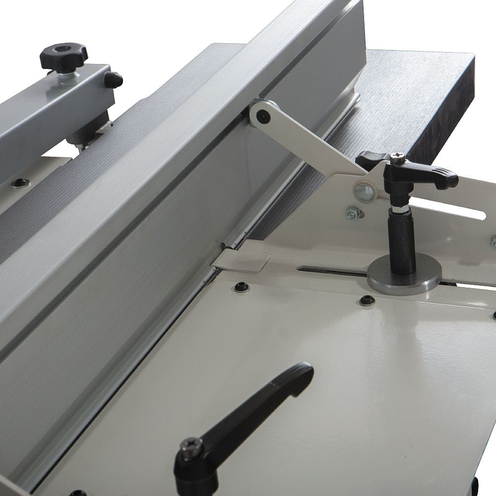 Za pomocą jednej ręki można szybko zmienić położenie żeliwnego stołu. Zmiana funkcji maszyny z wyrówniarki na grubościówkę nigdy nie była łatwiejsza. Długi stół oraz bardzo dokładna przykładnica gwarantują precyzję natomiast 3 nożowa głowica zapewnia idealnie opracowaną powierzchnię. Ustawienie wysokości stołu wejściowego za pomocą dźwigni mimośrodowej jest proste i łatwe. Za pomocą mimośrodu można również ustawić wysokość stołu wyjściowego. Dysza ssąca dzięki podłączeniu do odpowiedniego układu odciągowego utrzymuje maszynę w nienagannej czystości. Maszyna z szerokim zakresem zastosowań idealnie nadaje się do profesjonalnych warsztatów lub do pracowni majsterkowiczów.