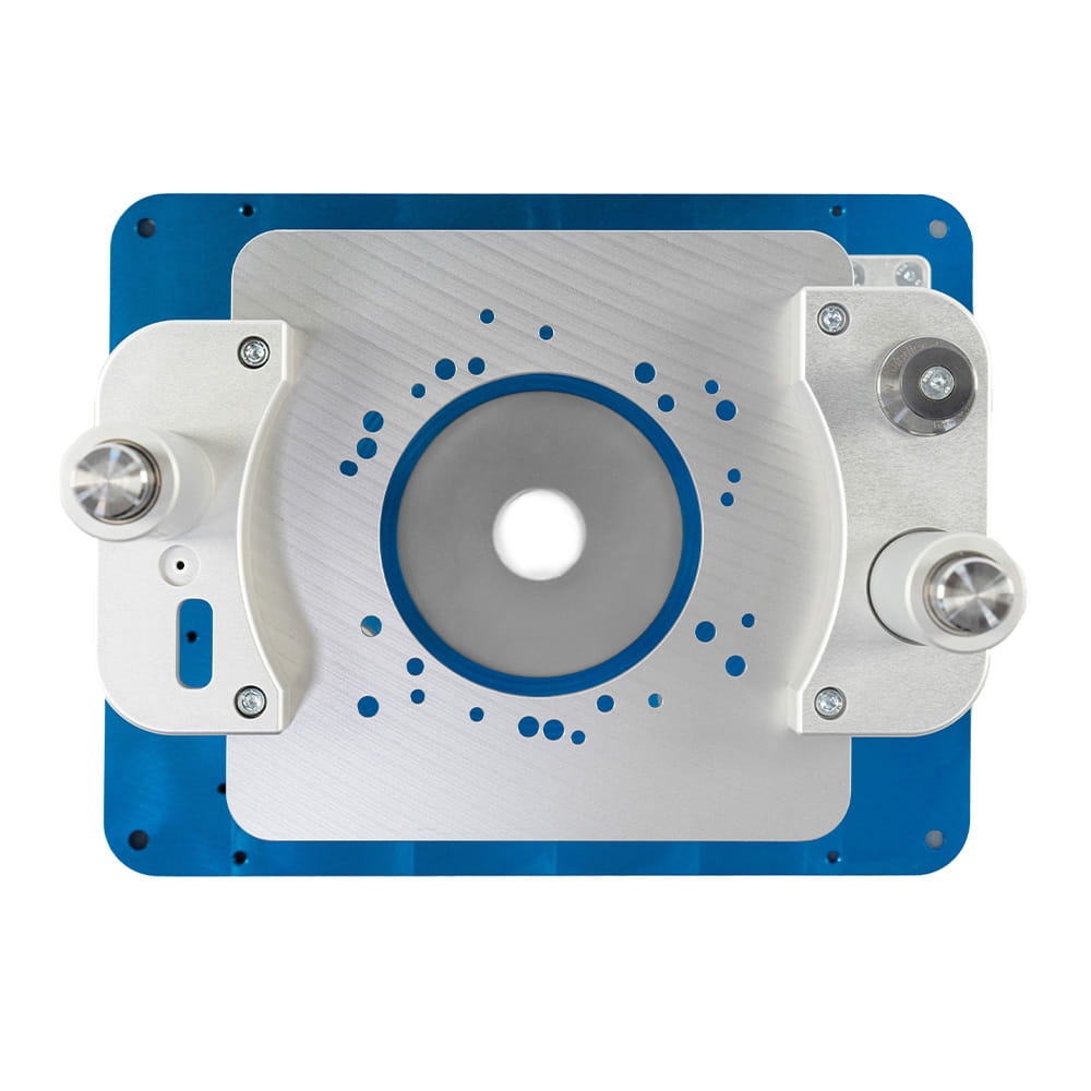 • Płytki redukcyjne można szybko i łatwo wymieniać dzięki otworowi w dolnej części. Idealnie dopasowują się do rozmiaru frezarki, szczególnie małe elementy nie zakleszczają się i nie utkną na krawędzi otworu.
