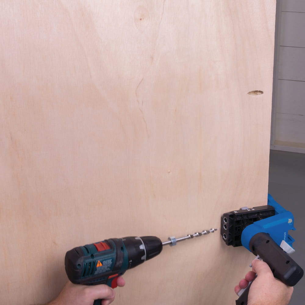 Regulowany ogranicznik głębokości zapewnia powtarzalność podczas wiercenia otworów kieszeniowych w wielu elementach o podobnej grubości. Szablon Pocket 520PRO może być używany na stole warsztatowym lub ze względu na swoją elastyczność bezpośrednio na obrabianym przedmiocie.