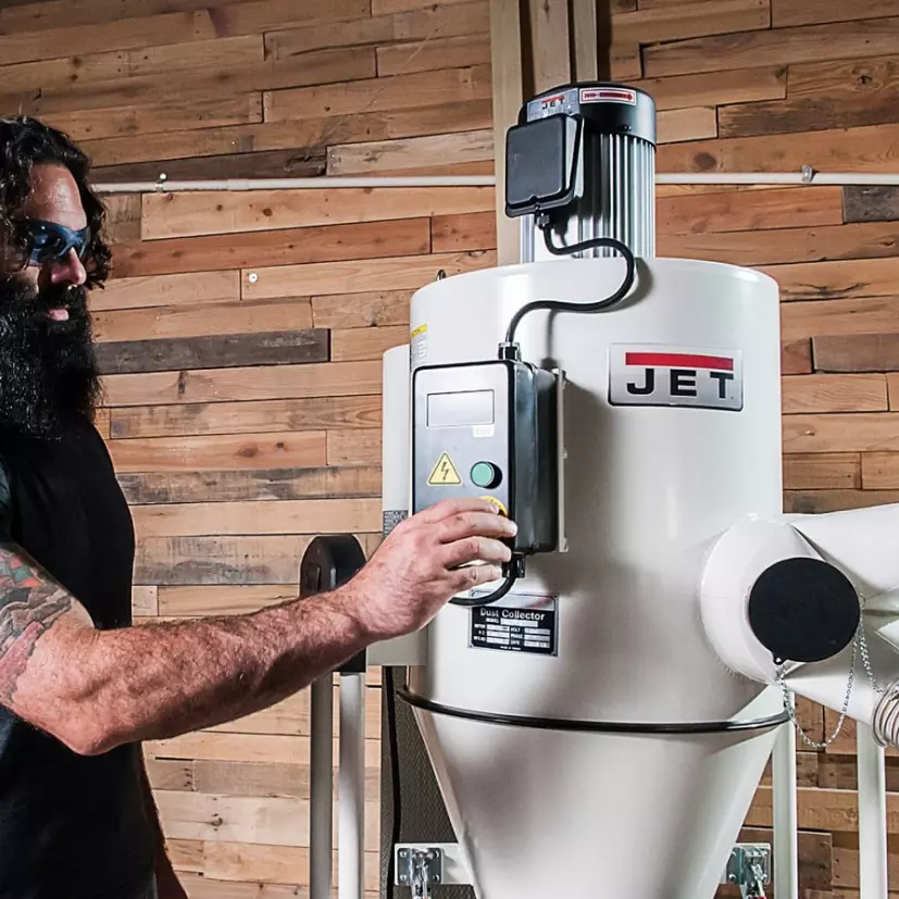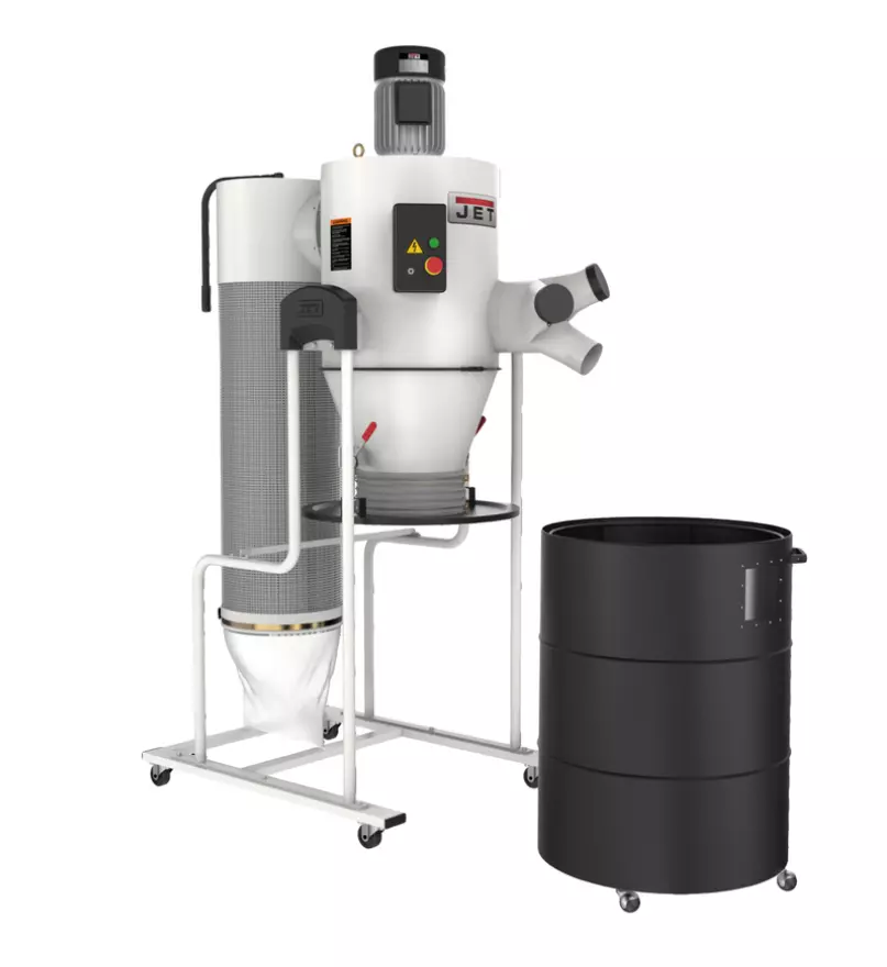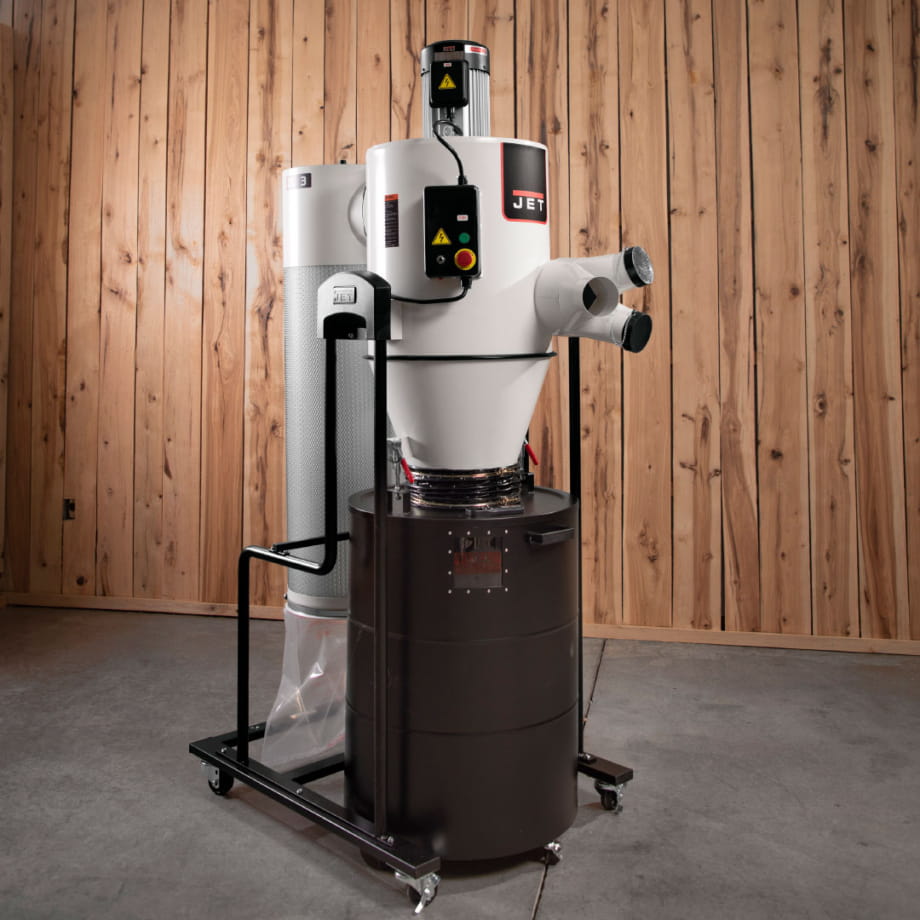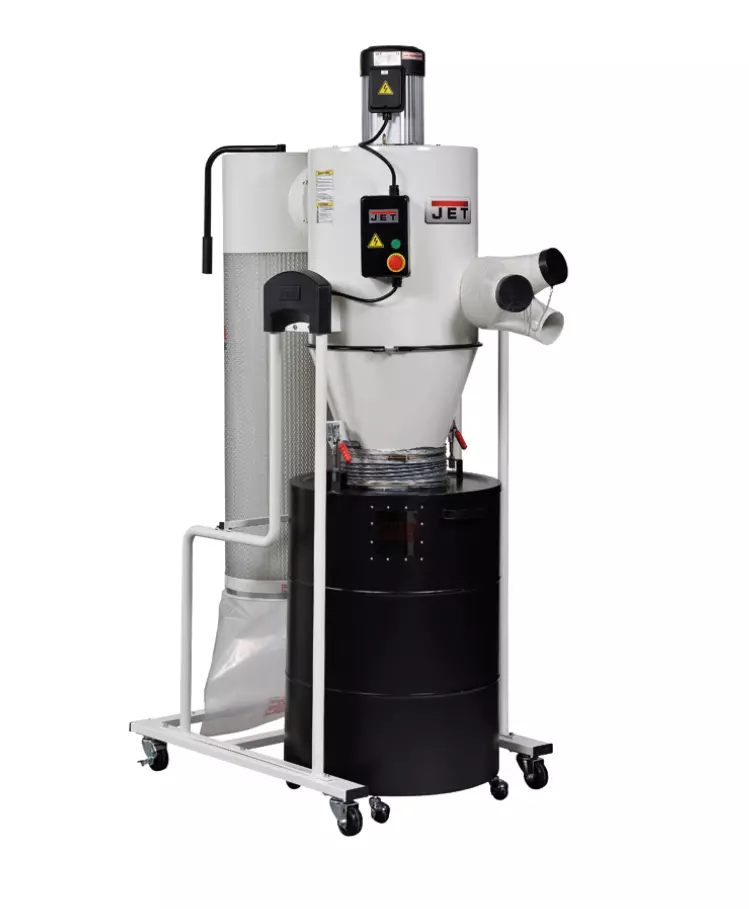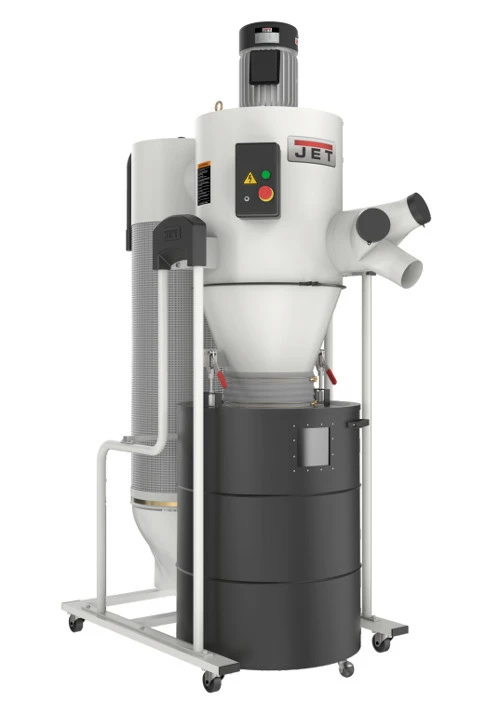 Jet JCDC-30 to cyklonowy odciąg do trocin zaprojektowany do zastosowań profesjonalnych. Wyposażony jest w duży metalowy zbiornik o pojemności 250 litrów, wydajny mikrofiltr o powierzchni 4,2 m², mocny silnik 400 V oraz pilot zdalnego sterowania. Mikrofiltr zatrzymuje 99% cząstek o wielkości nawet 2 mikronów, zapobiegając przedostawaniu się pyłu z powrotem do powietrza w pomieszczeniu.