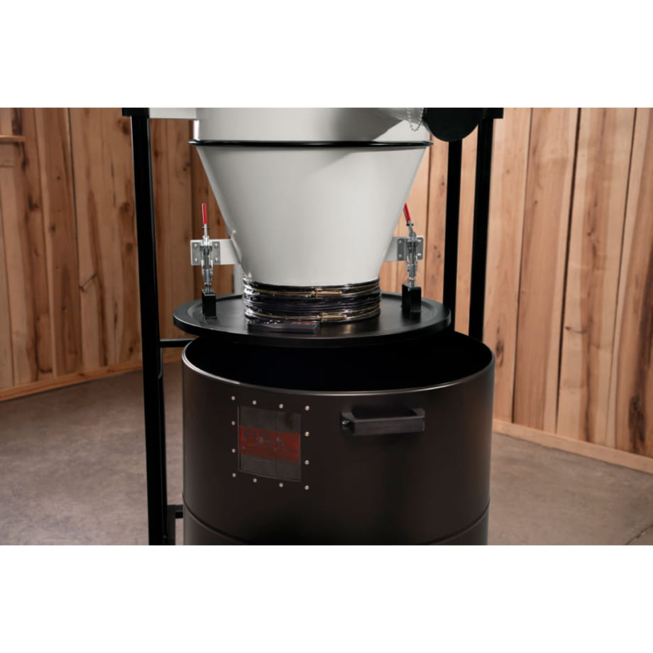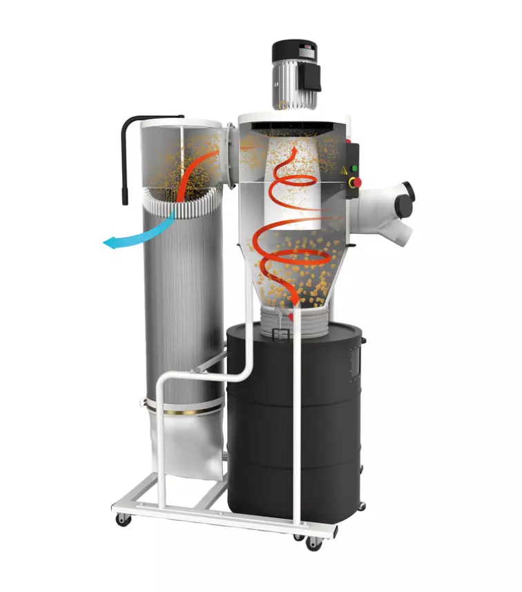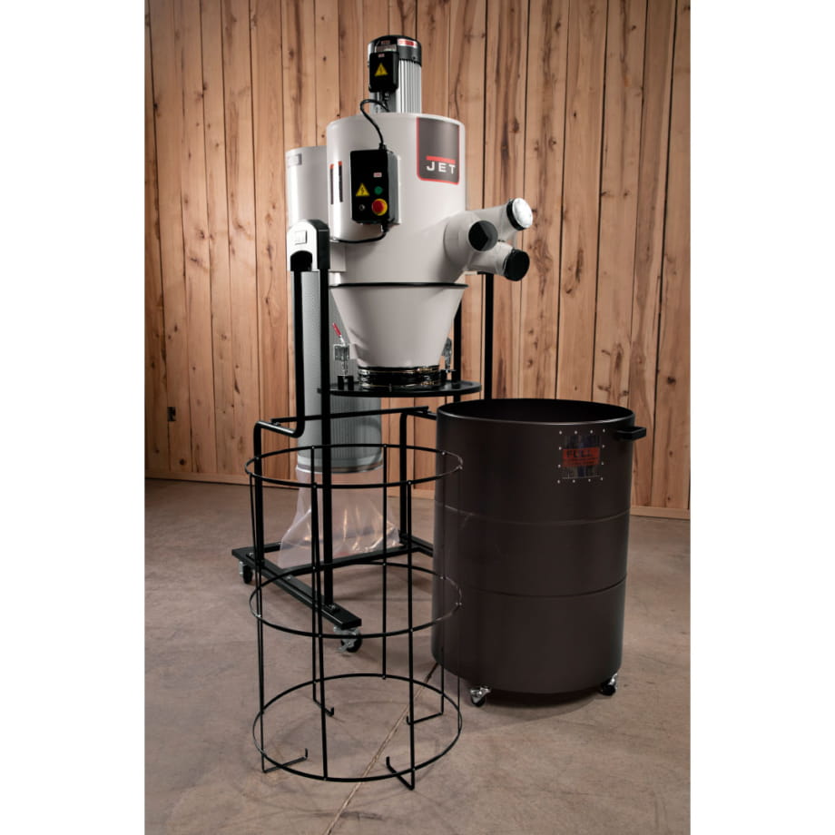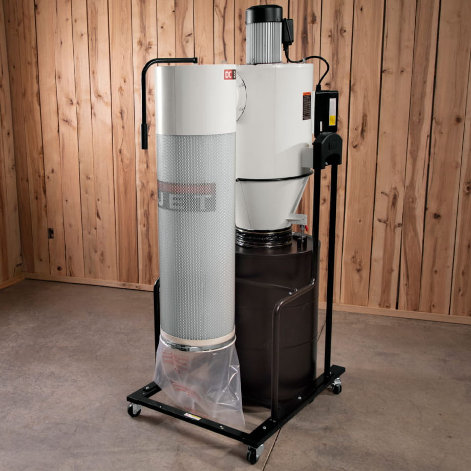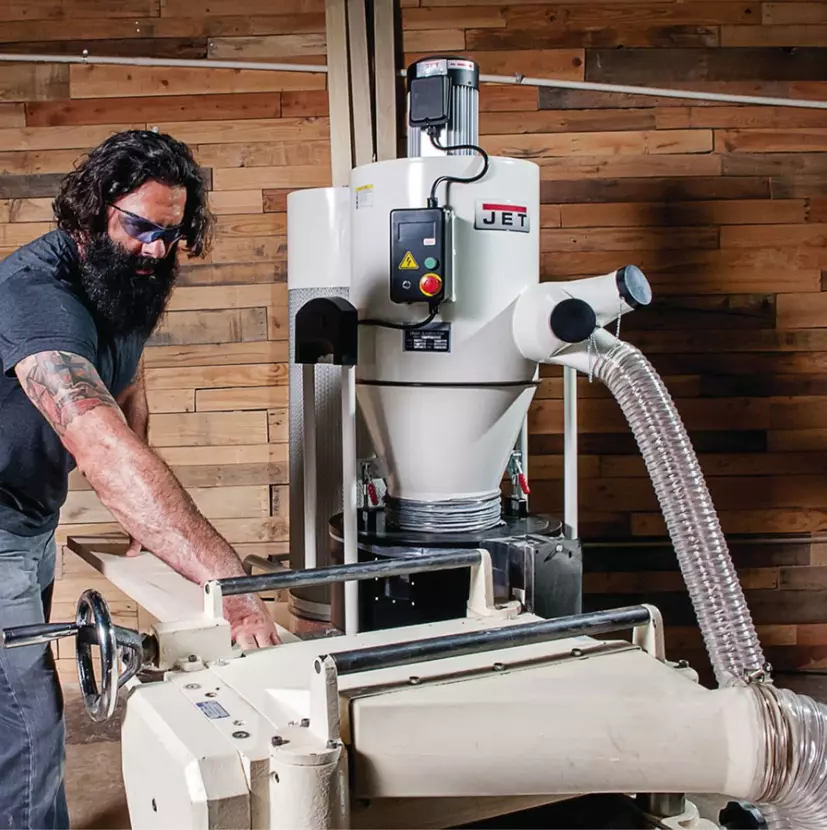 Jet JCDC-30 to cyklonowy odciąg do trocin zaprojektowany do zastosowań profesjonalnych. Wyposażony jest w duży metalowy zbiornik o pojemności 250 litrów, wydajny mikrofiltr o powierzchni 4,2 m², mocny silnik 400 V oraz pilot zdalnego sterowania. Mikrofiltr zatrzymuje 99% cząstek o wielkości nawet 2 mikronów, zapobiegając przedostawaniu się pyłu z powrotem do powietrza w pomieszczeniu.