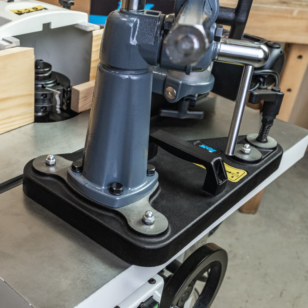 ✴️ Żeliwną podstawę można łatwo przemieścić dzięki dźwigni blokującej, która w prosty sposób odłącza ją od stołu.