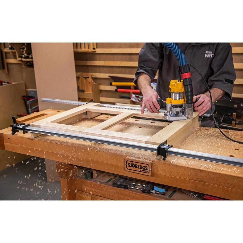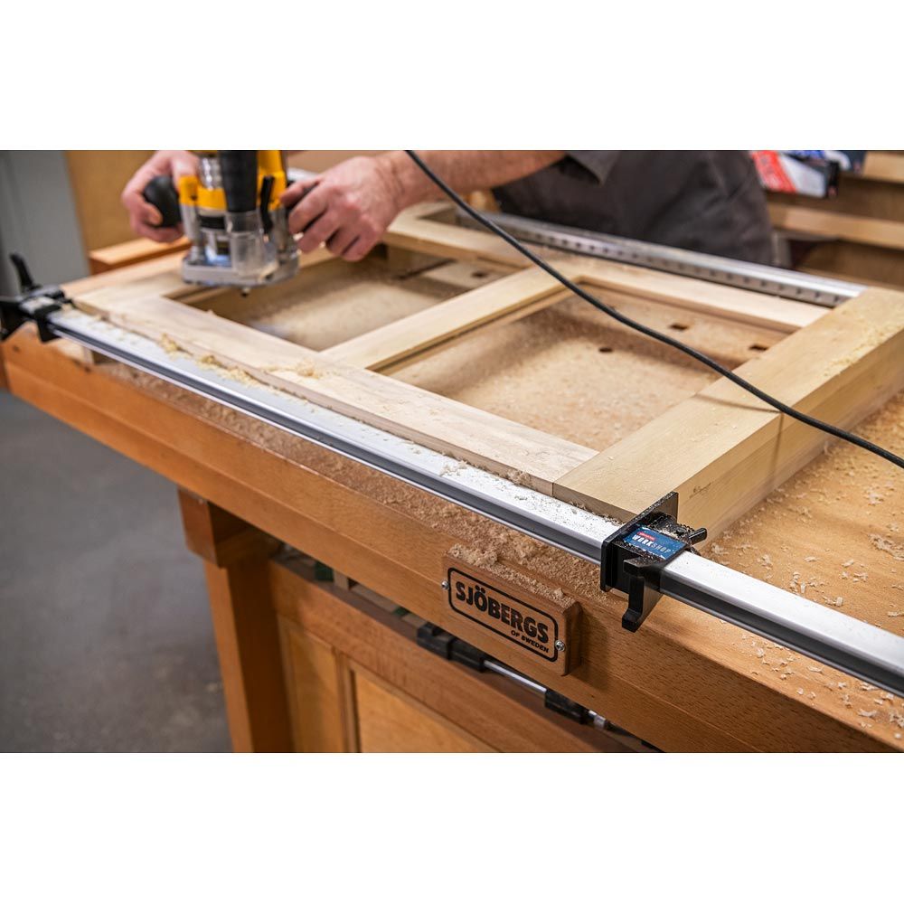 Listwy wykonano z grubego aluminium wytłaczanego o wymiarach 35 mm × 22 mm. Aluminiowe stopy zapewniają stabilność, zapobiegają przewracaniu się i podnoszą wysokość, co ułatwia obracanie uchwytu. Ściski są w pełni regulowane i blokują się co 25 mm. Gwintowane wrzeciona mają średnicę 12 mm z gwintem Acme, co umożliwia wywiercenie maksymalnej siły zacisku.