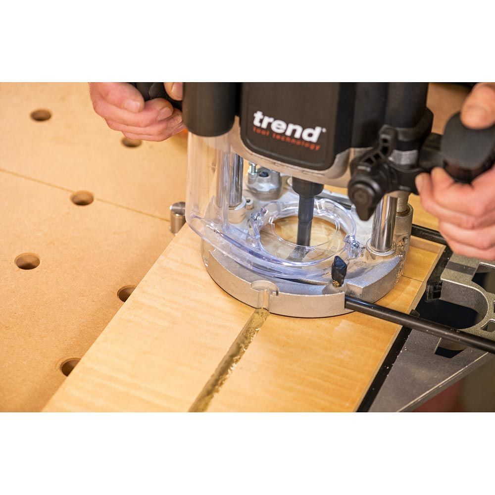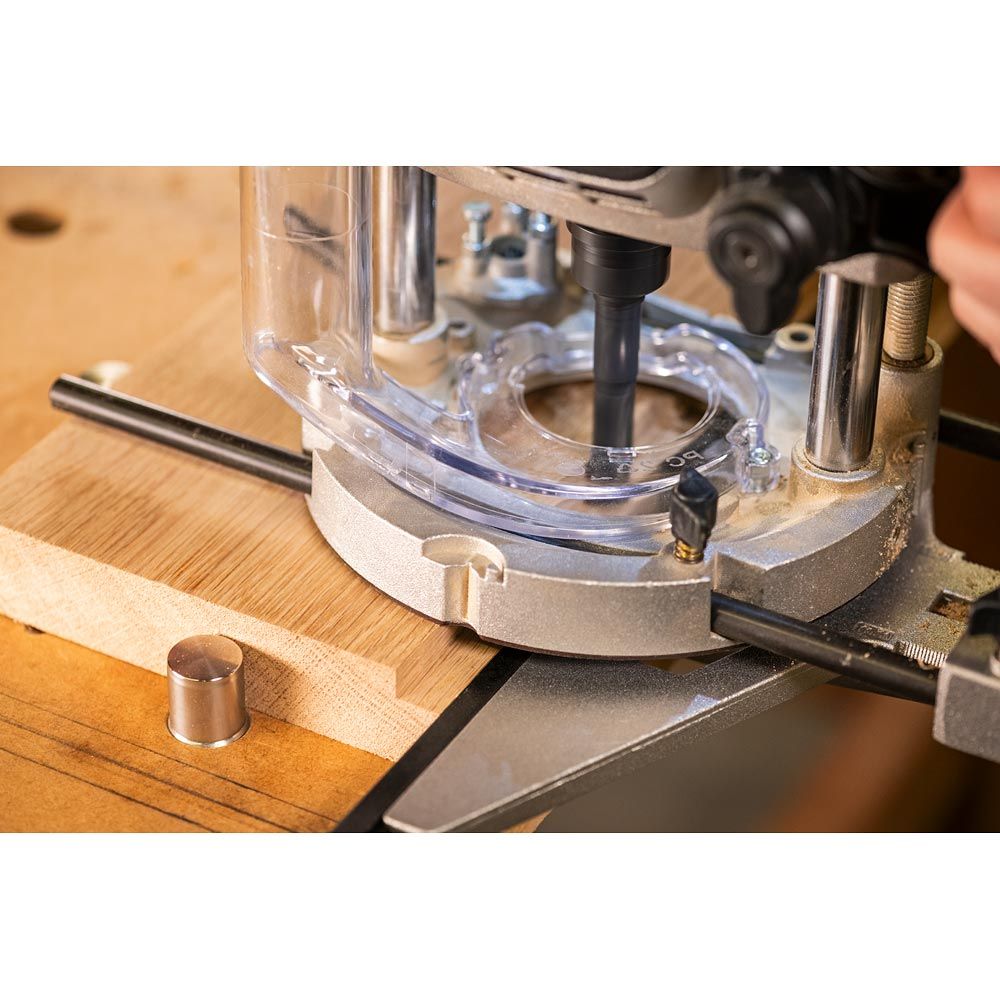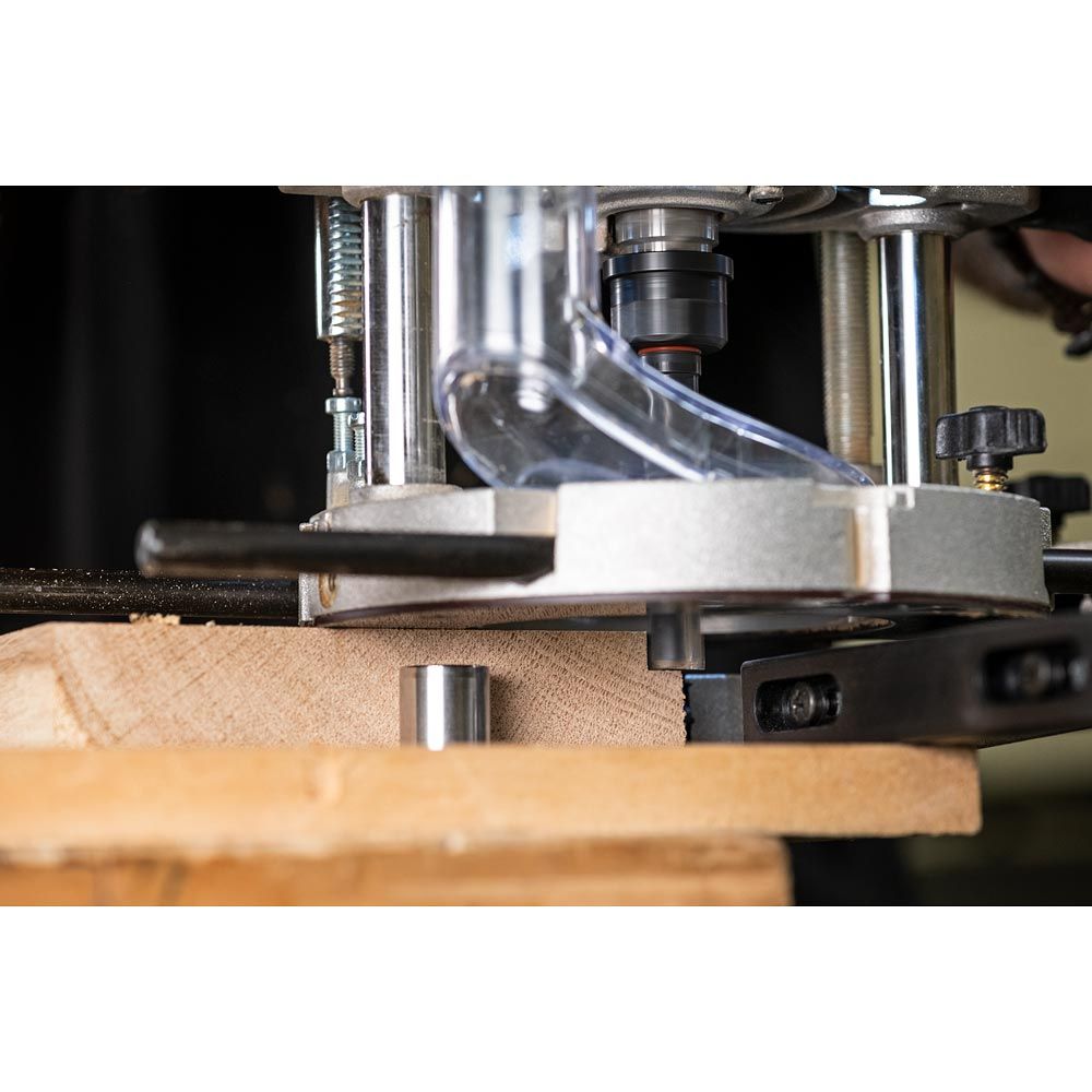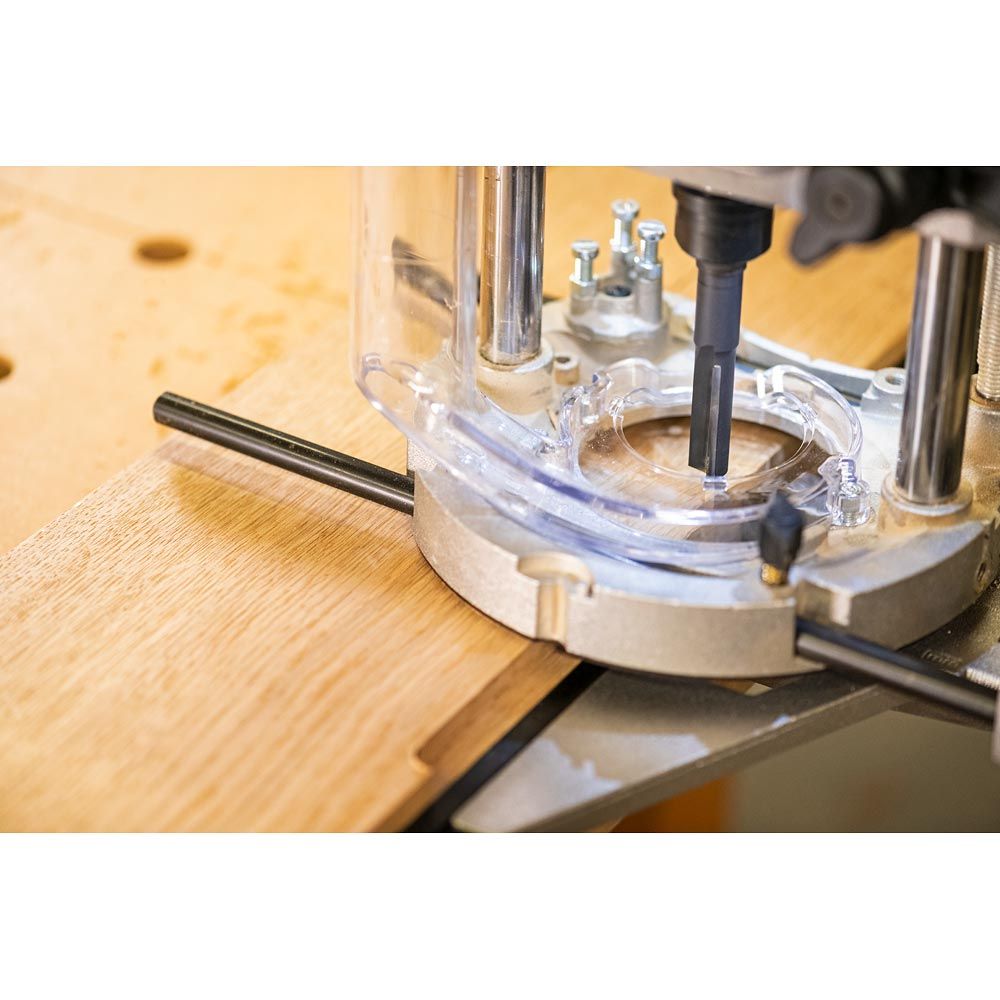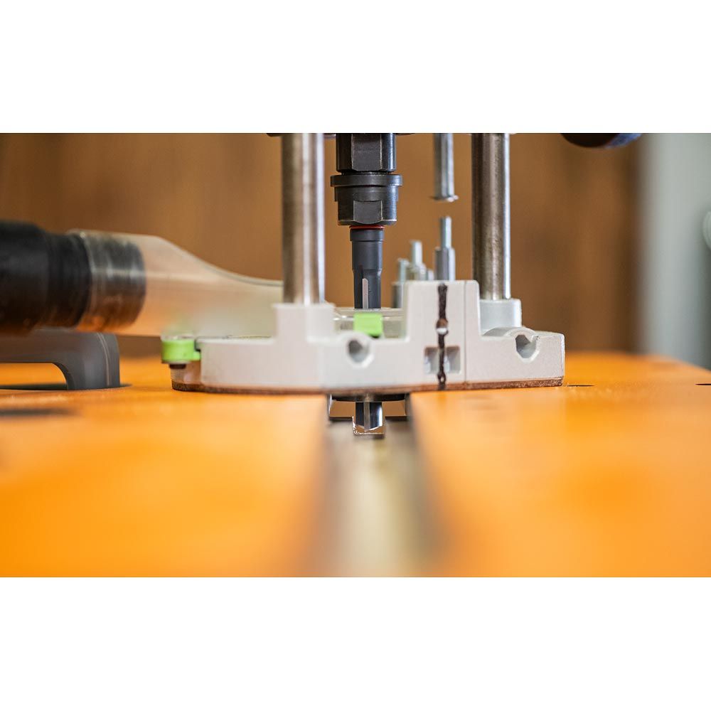Wbudowany „stop insertion ring” eliminuje konieczność szukania wyblakłych linii K, zapewniając bezpieczne i prawidłowe osadzenie frezu za każdym razem, a przy tym oszczędza czas podczas montażu. Dodatkowo pełni funkcję gumowego uszczelnienia tulei, chroniąc przed dostawaniem się pyłu drzewnego do szczelin uchwytu.